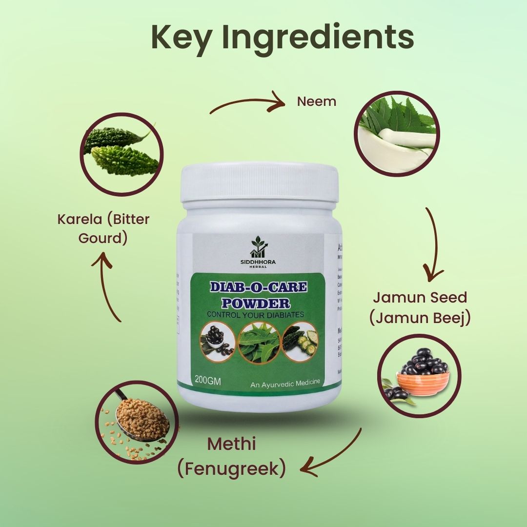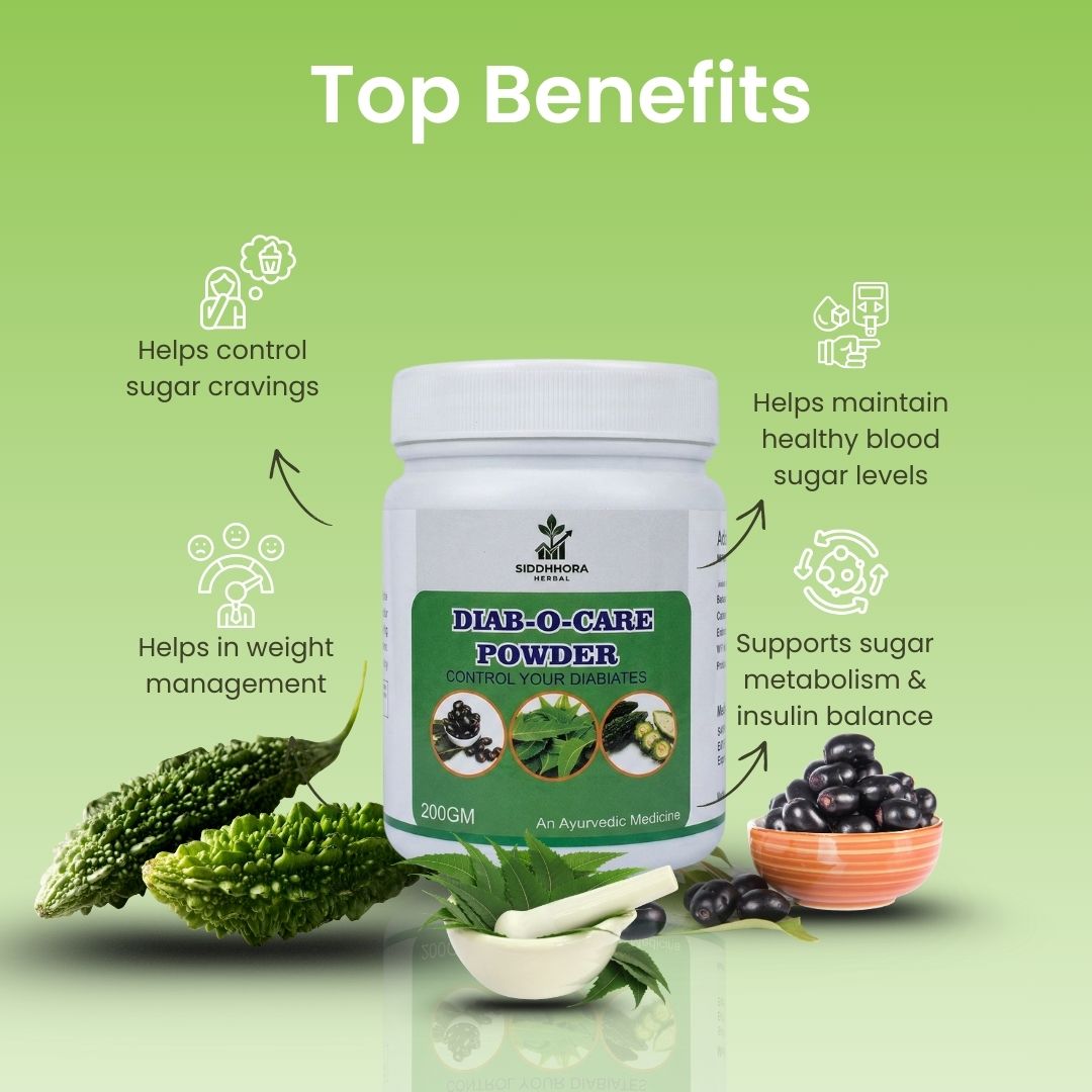 Diab O Care Powder is a herbal wellness formulation developed to support daily metabolic balance and overall well-being. It is prepared using traditionally used Ayurvedic herbs that help maintain a healthy lifestyle when consumed regularly along with proper diet and routine.